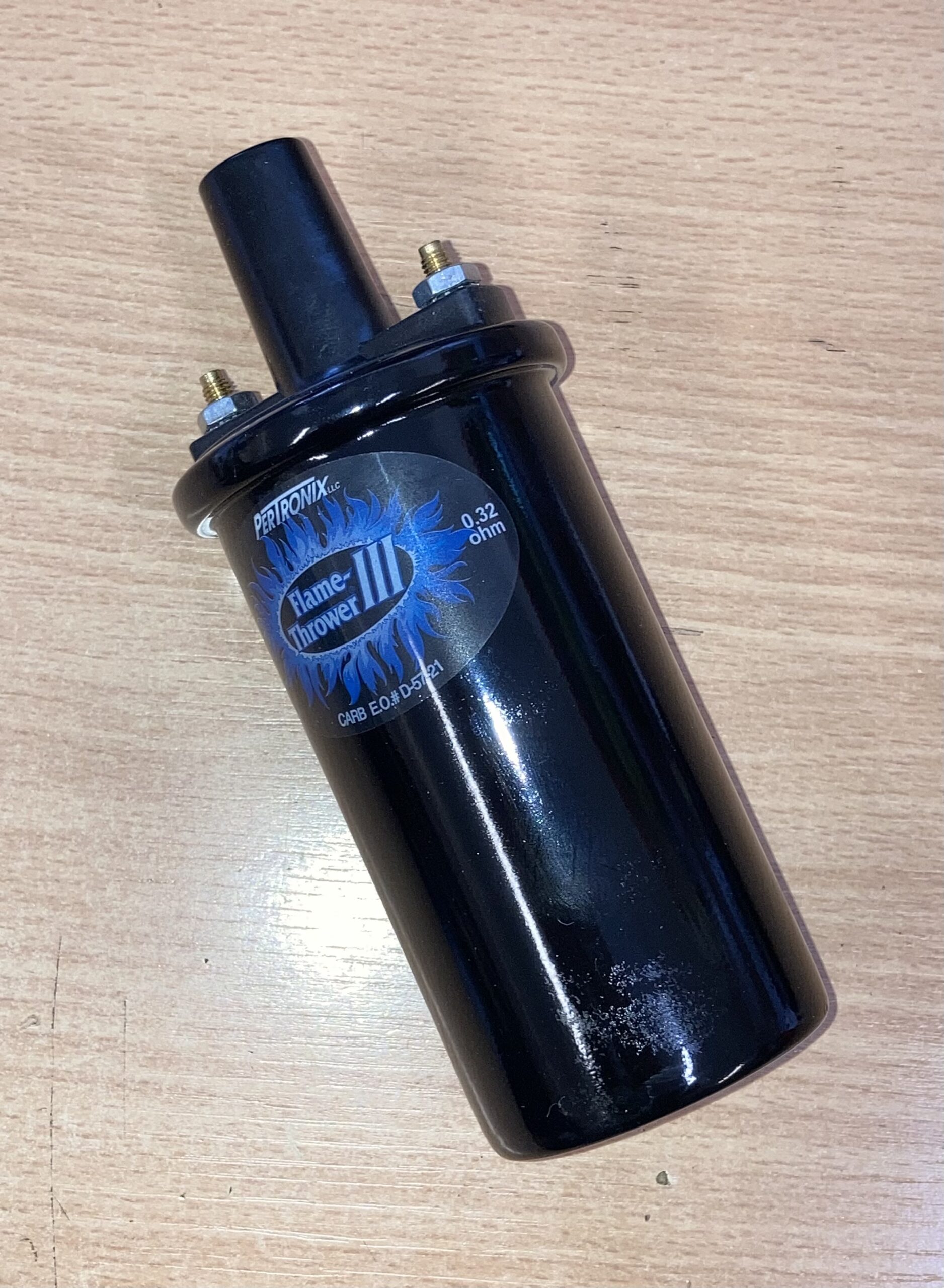 Upgrade your car ignition system with the Flame Thrower III Coils, designed to deliver exceptional performance and reliability. These coils are specifically engineered for use with Ignitor III Electronic Ignition Conversion kits, making them an ideal choice for automotive enthusiasts who demand the best from their vehicles. Optimized for high performance, the Flame Thrower III car ignition coil features an ultra-low resistance of just 0.32 ohms and a high turn ratio, which allows your ignition system to charge faster and more efficiently, even at high RPMs. With the ability to deliver up to 45,000 volts, this electronic ignition coil ensures that your engine receives a powerful and consistent spark every time. This spark plug ignition coil charges to peak current 30-70% faster than other coils on the market, meaning that maximum spark energy is sustained even as engine speed increases. This rapid charge capability translates to improved fuel efficiency, smoother acceleration, and enhanced overall performance.