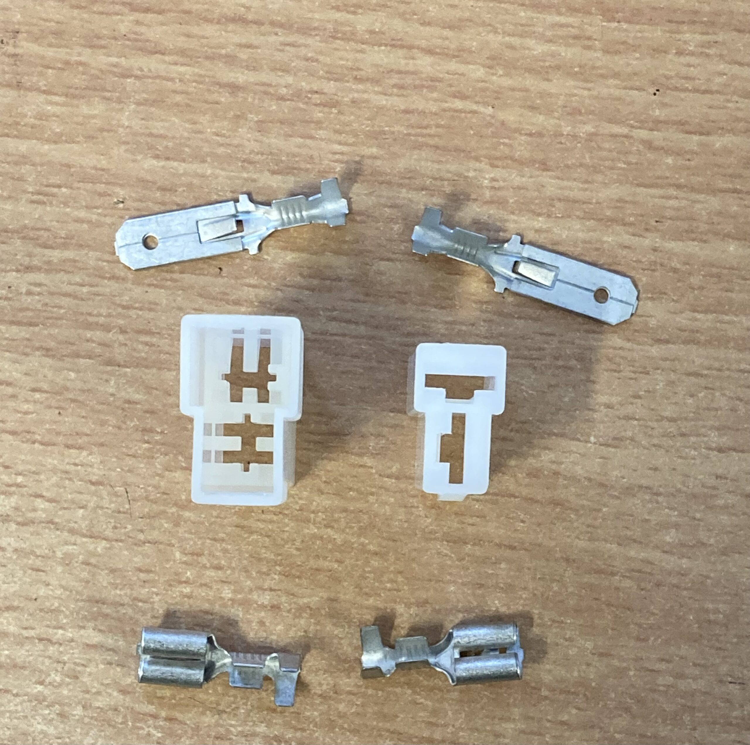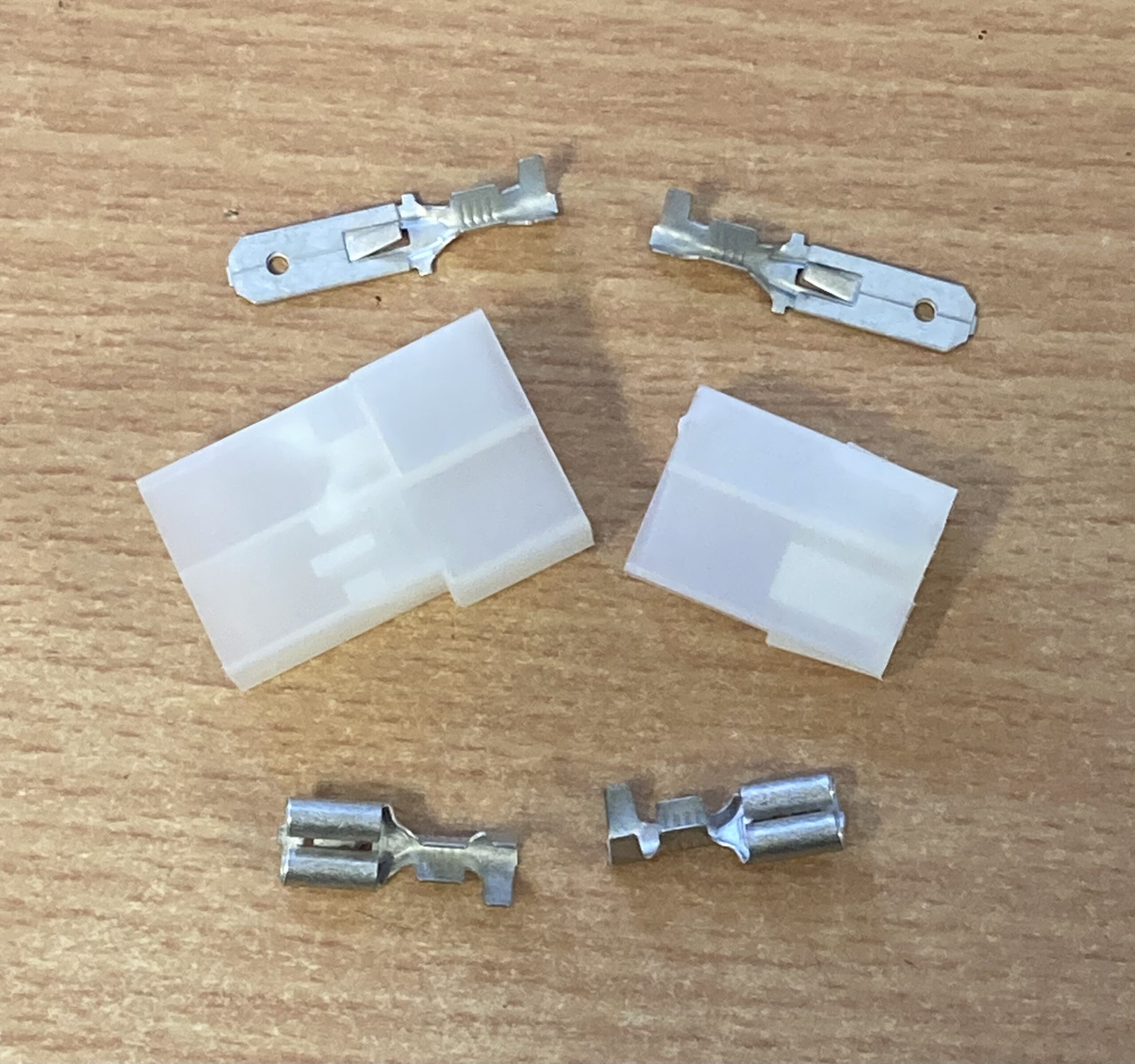 2 Way T shaped Tab & Spade plug complete with terminals.